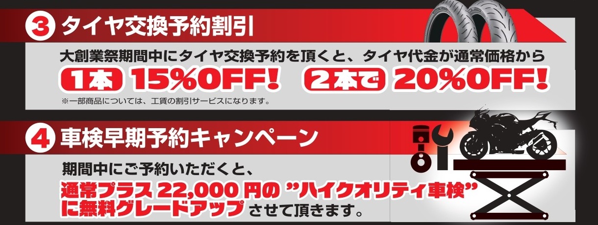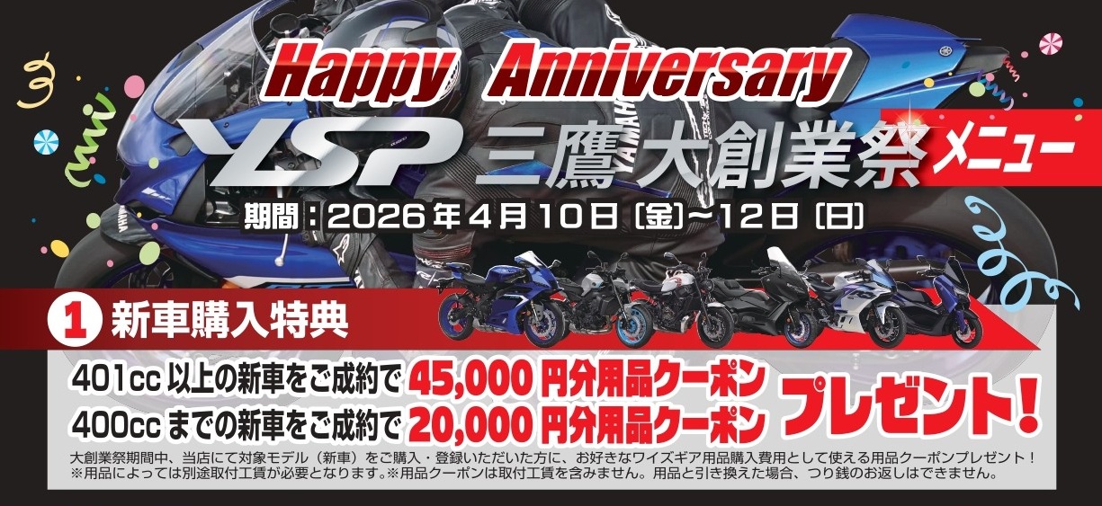 401cc以上の新車をご成約頂くと ⇒ 45,000円分の用品クーポンプレゼント!